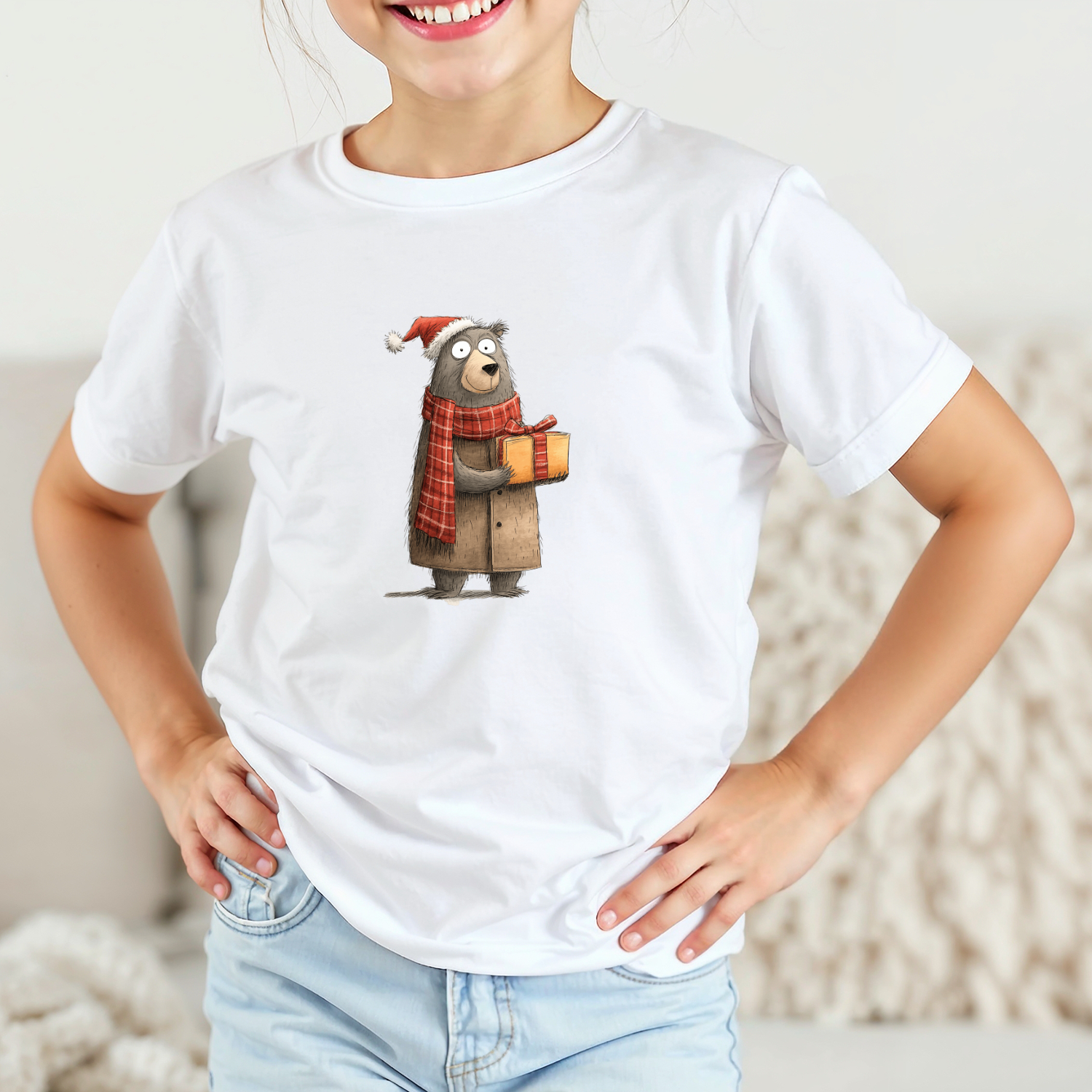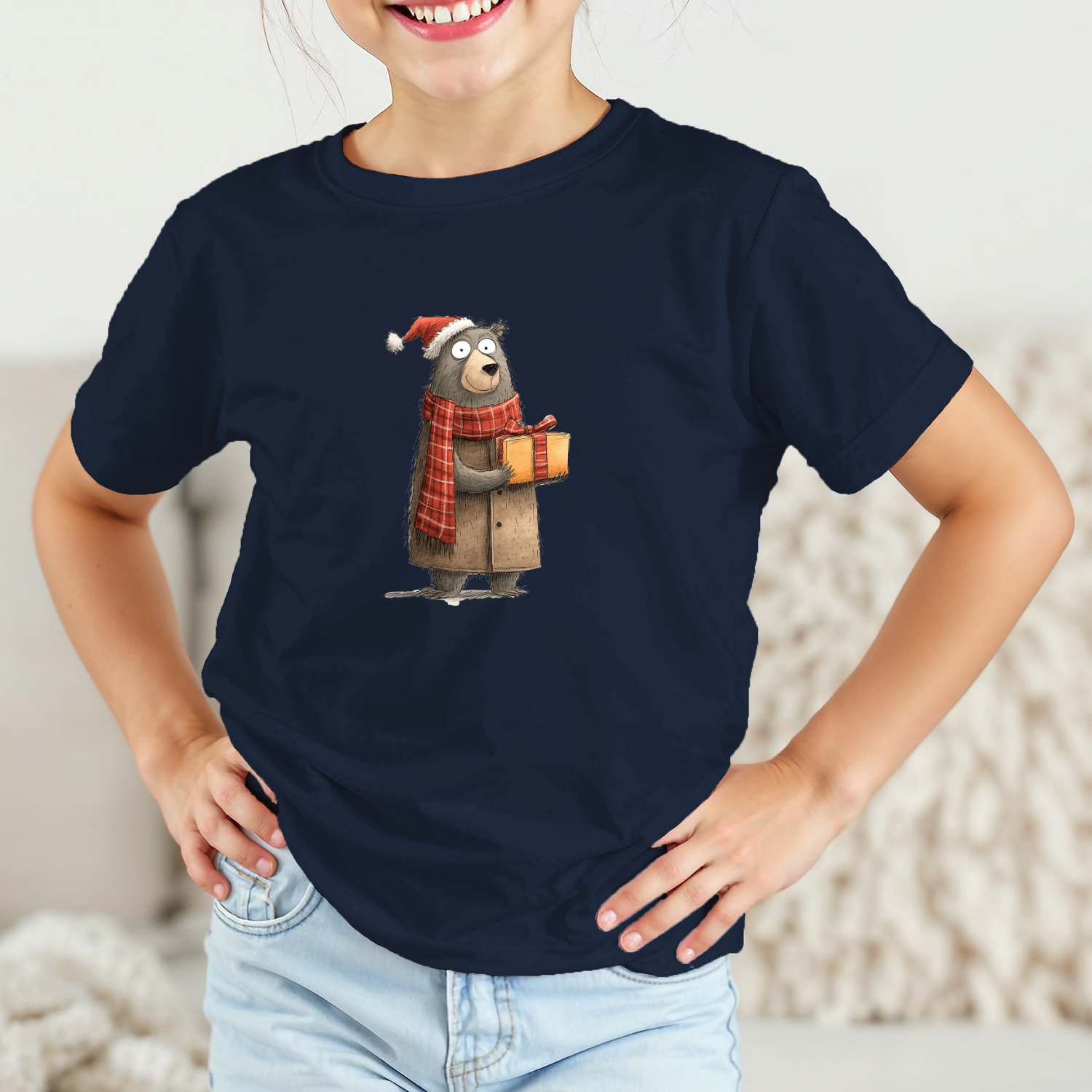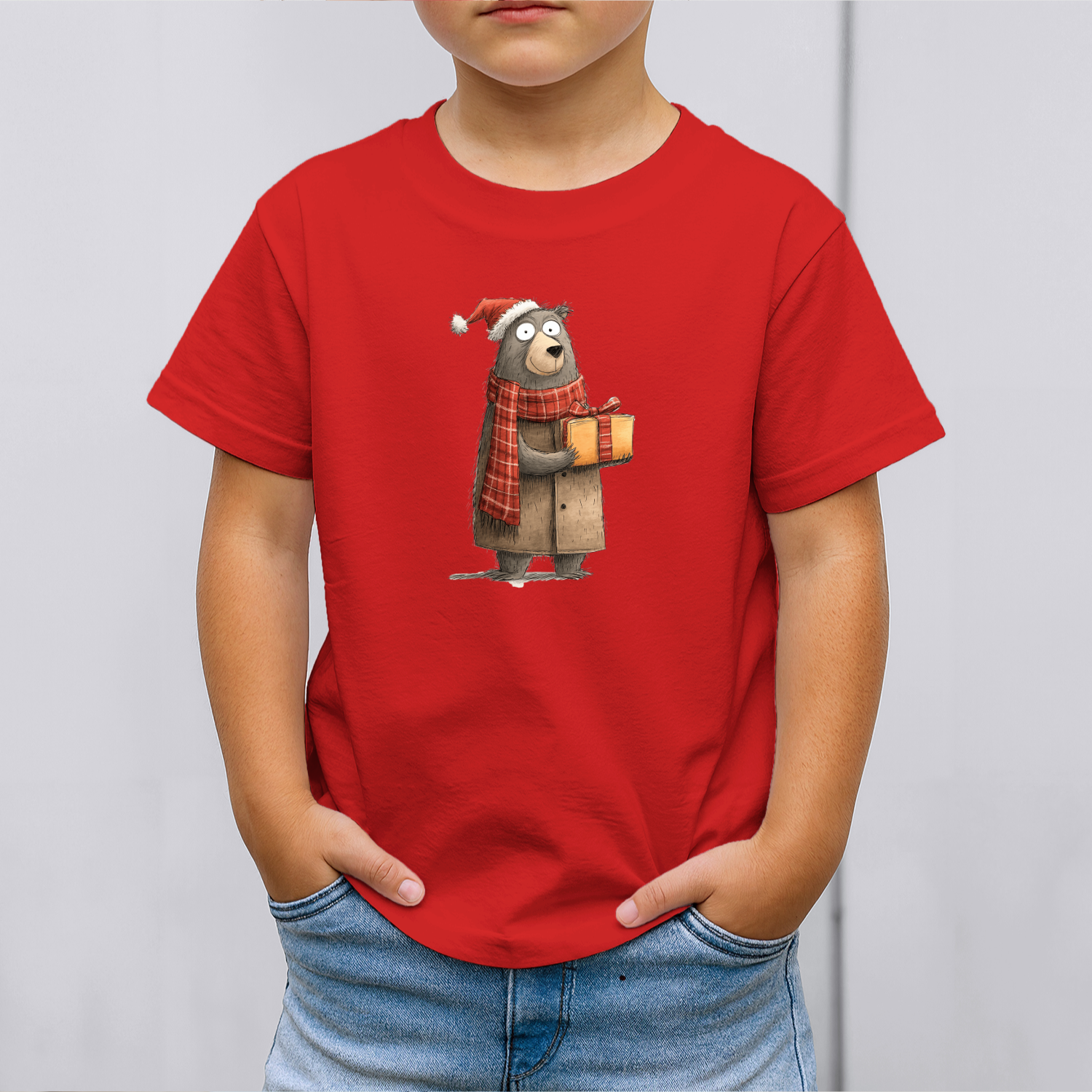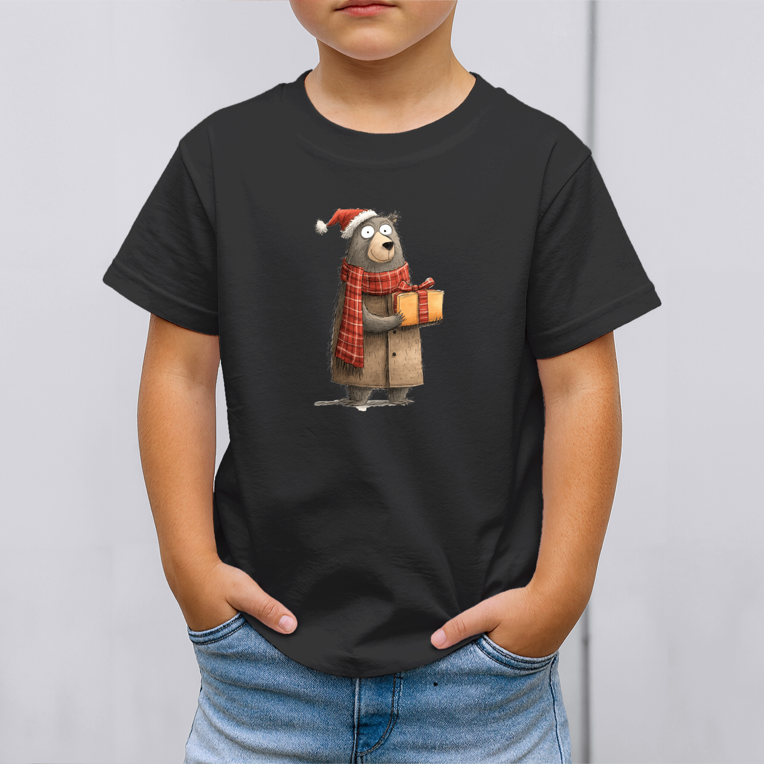 Vaikiški marškinėliai su spauda „Kalėdų linkėjimai nuo meškino“