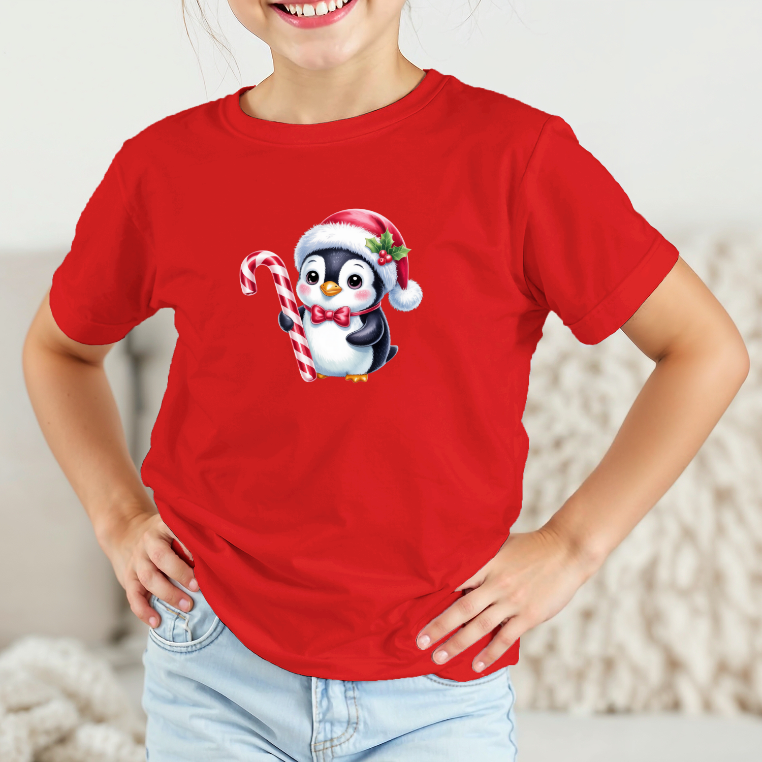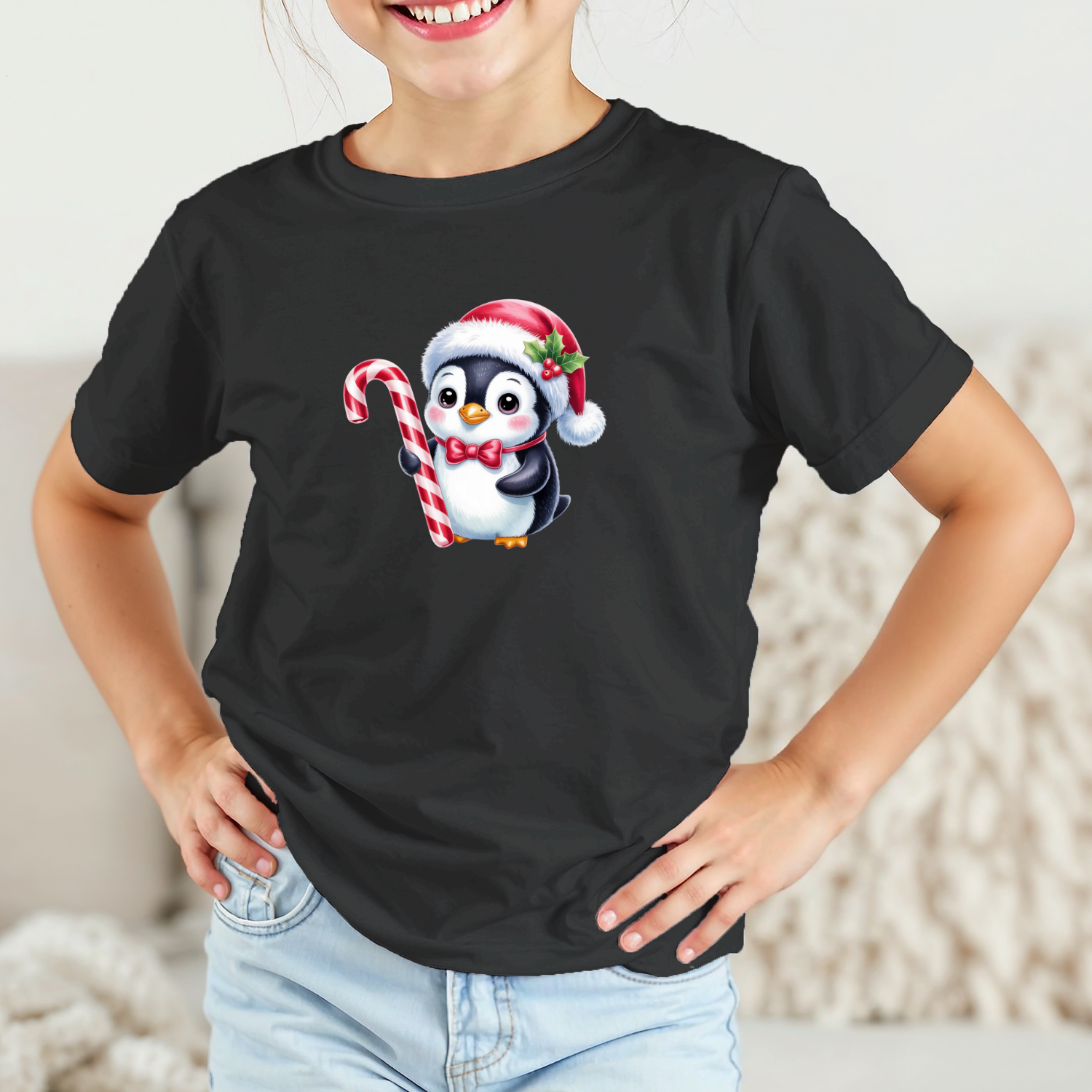 Vaikiški marškinėliai su spauda „Kalėdų pingvinas“