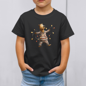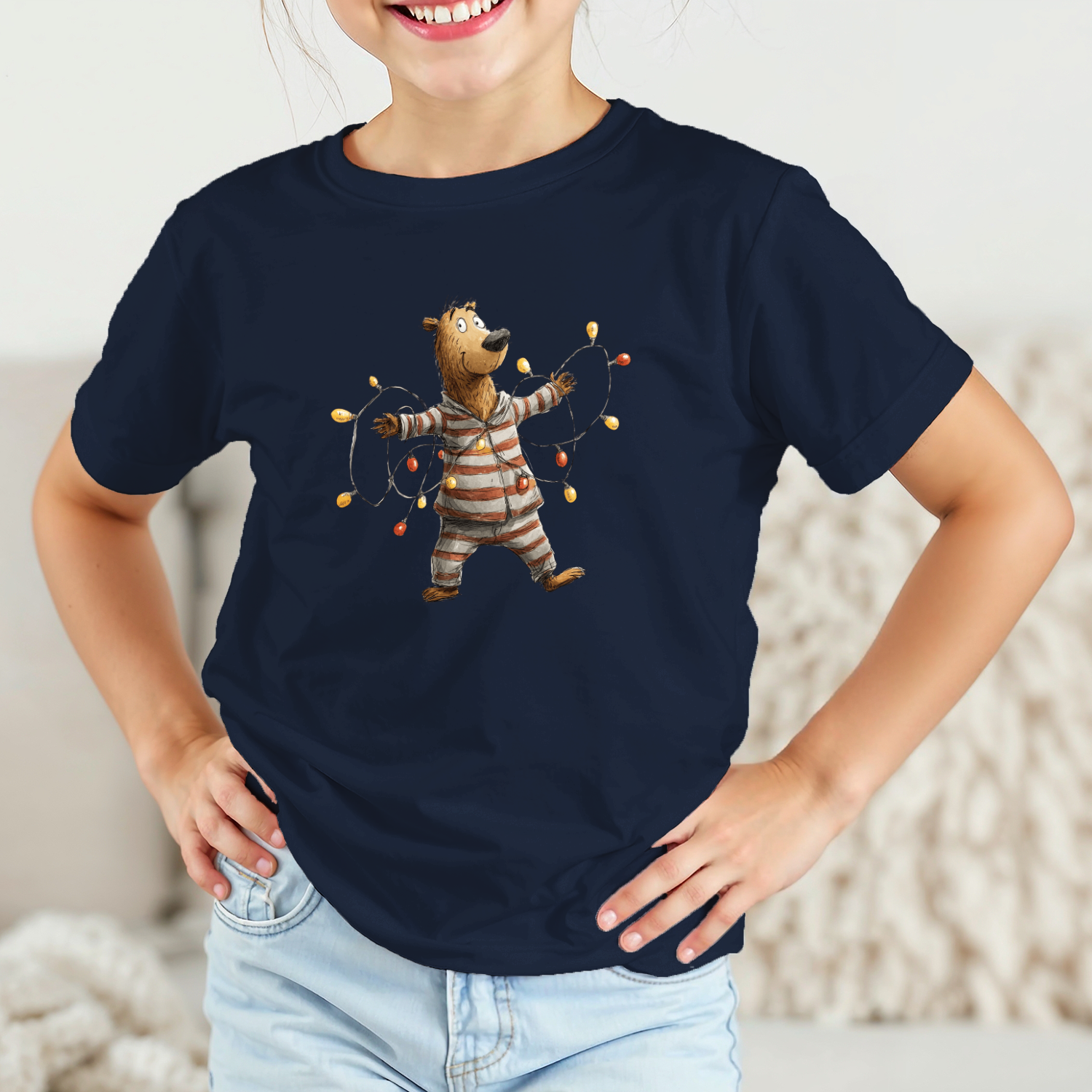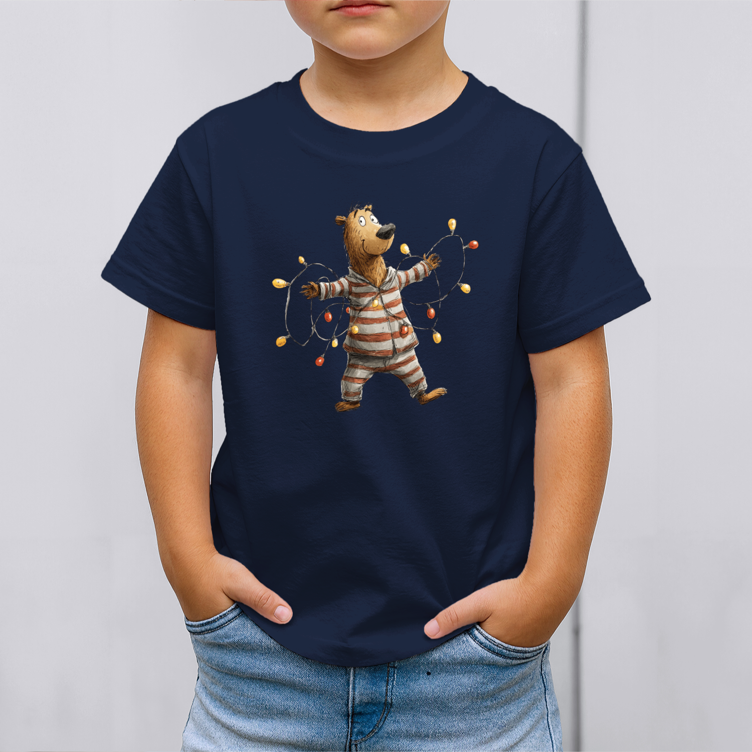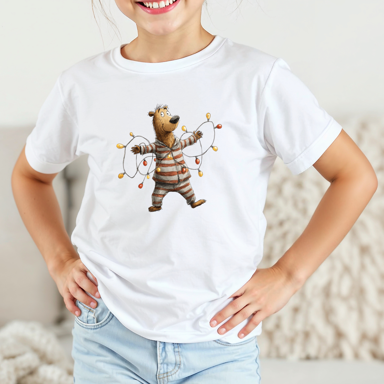 Vaikiški marškinėliai su spauda „Kalėdų švieselių meškutis“