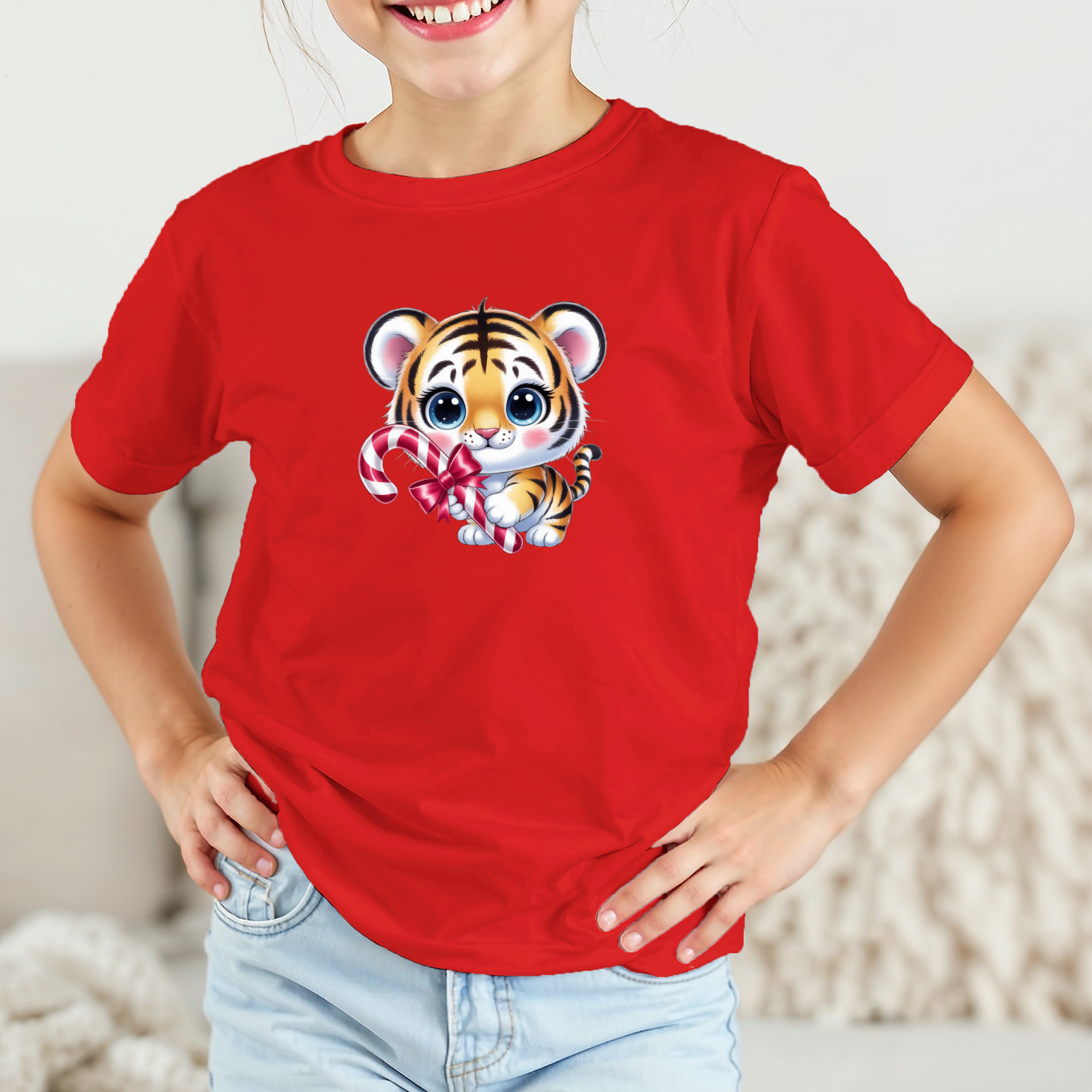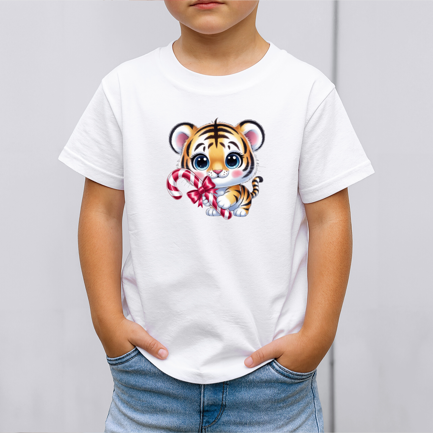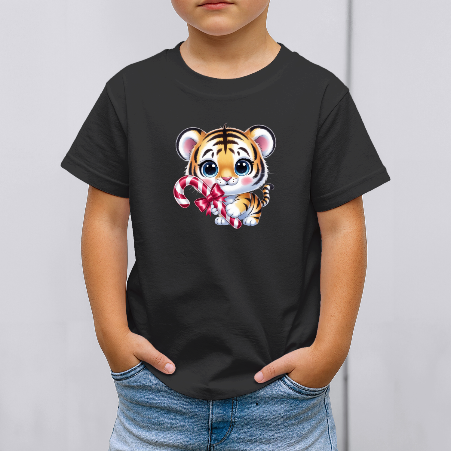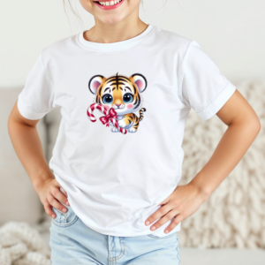 Vaikiški marškinėliai su spauda „Kalėdų tigriukas“