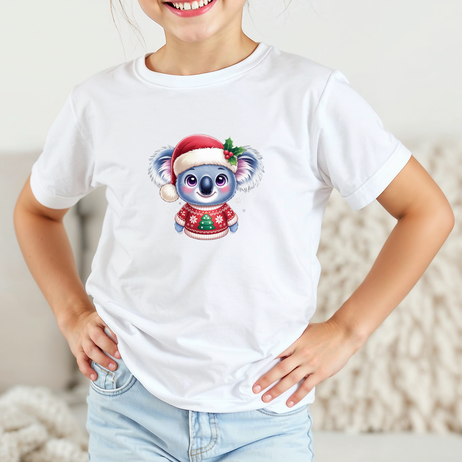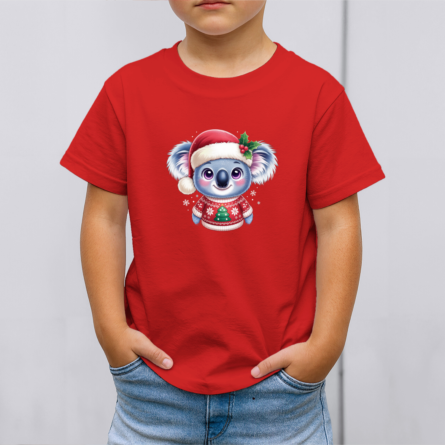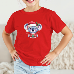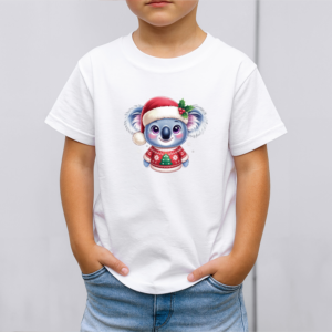 Vaikiški marškinėliai su spauda „Koala su kalėdiniu megztuku“