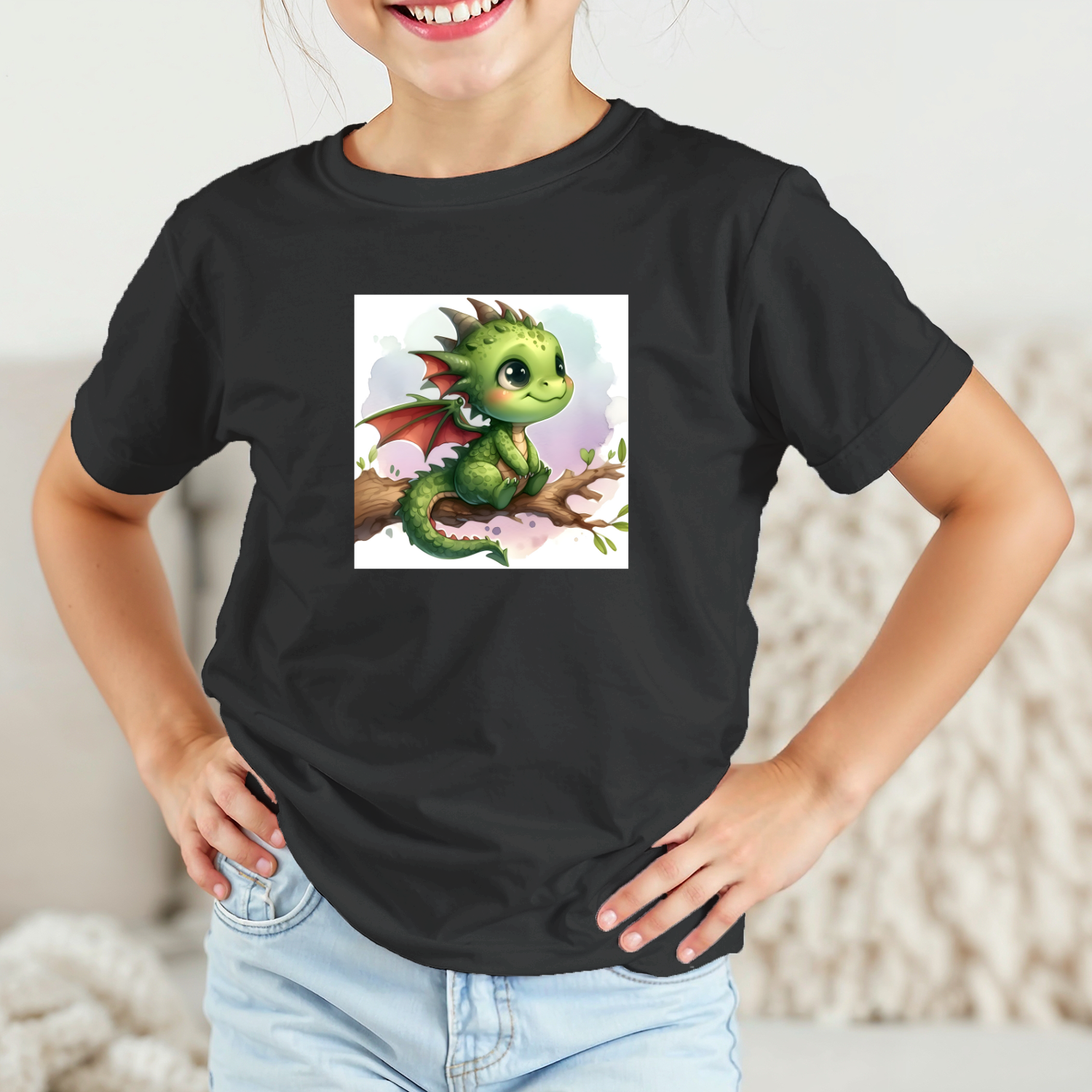 Vaikiški marškinėliai su spauda „Žaliasis drakonas“