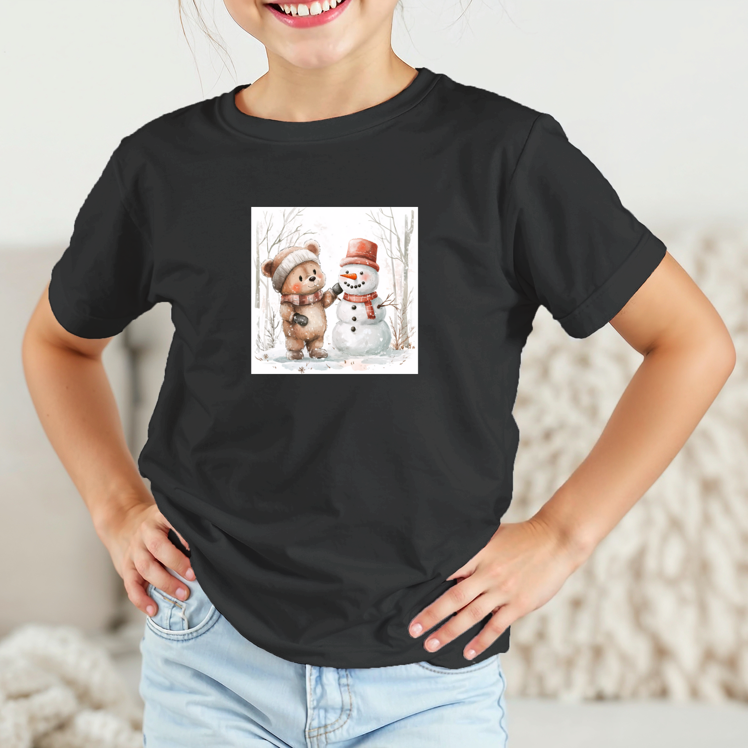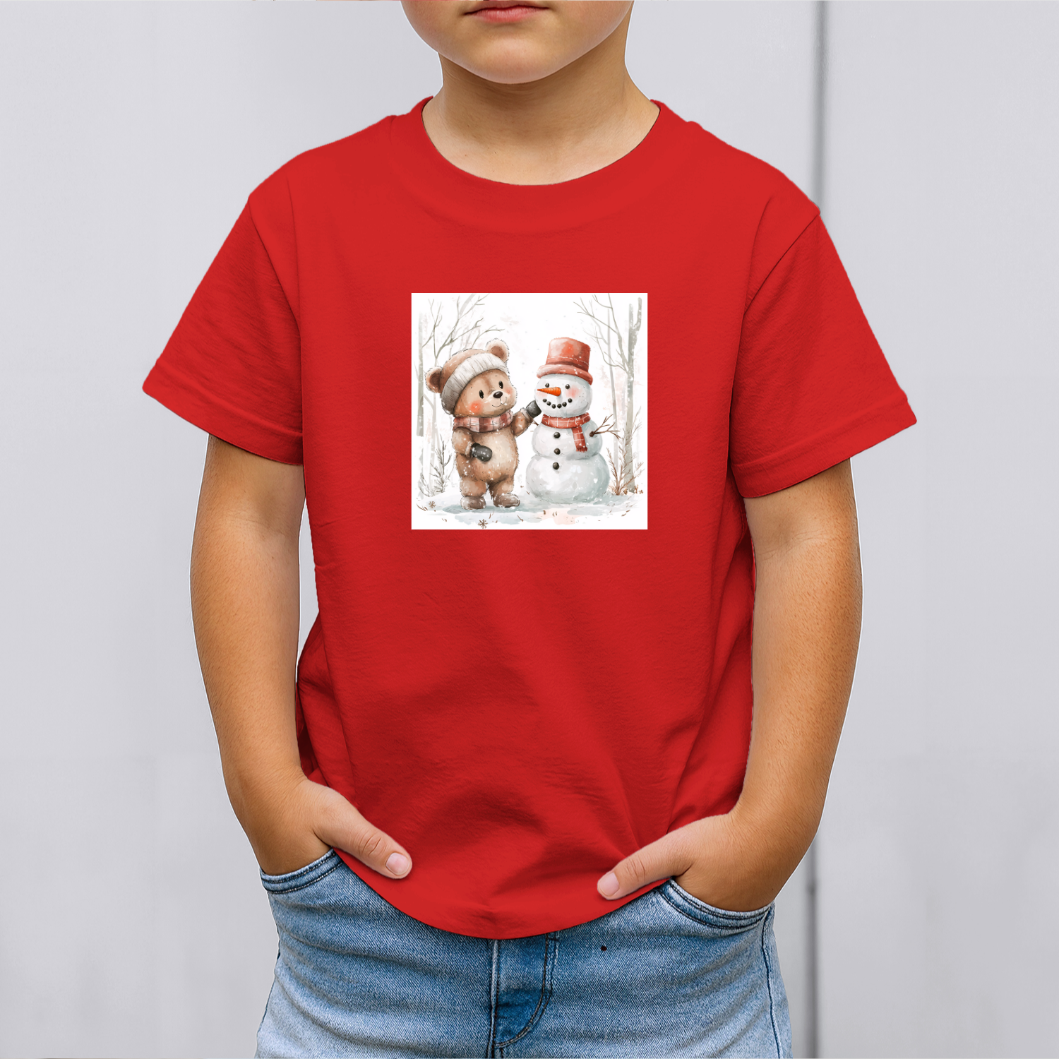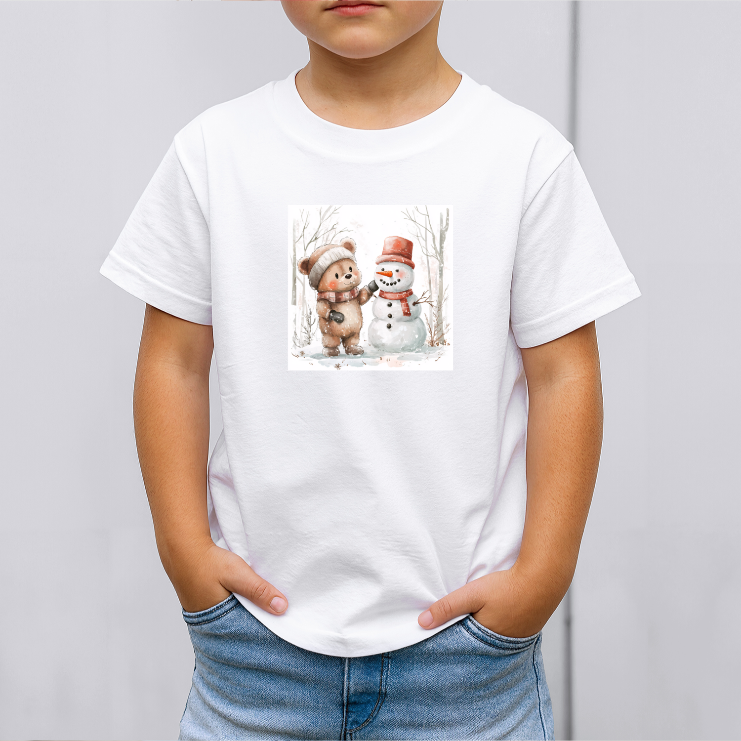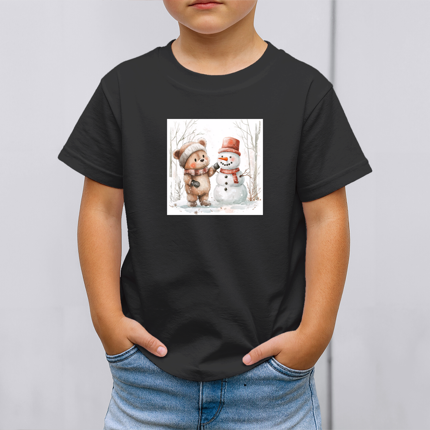 Vaikiški marškinėliai su spauda „Meškiukas ir sniego senis“