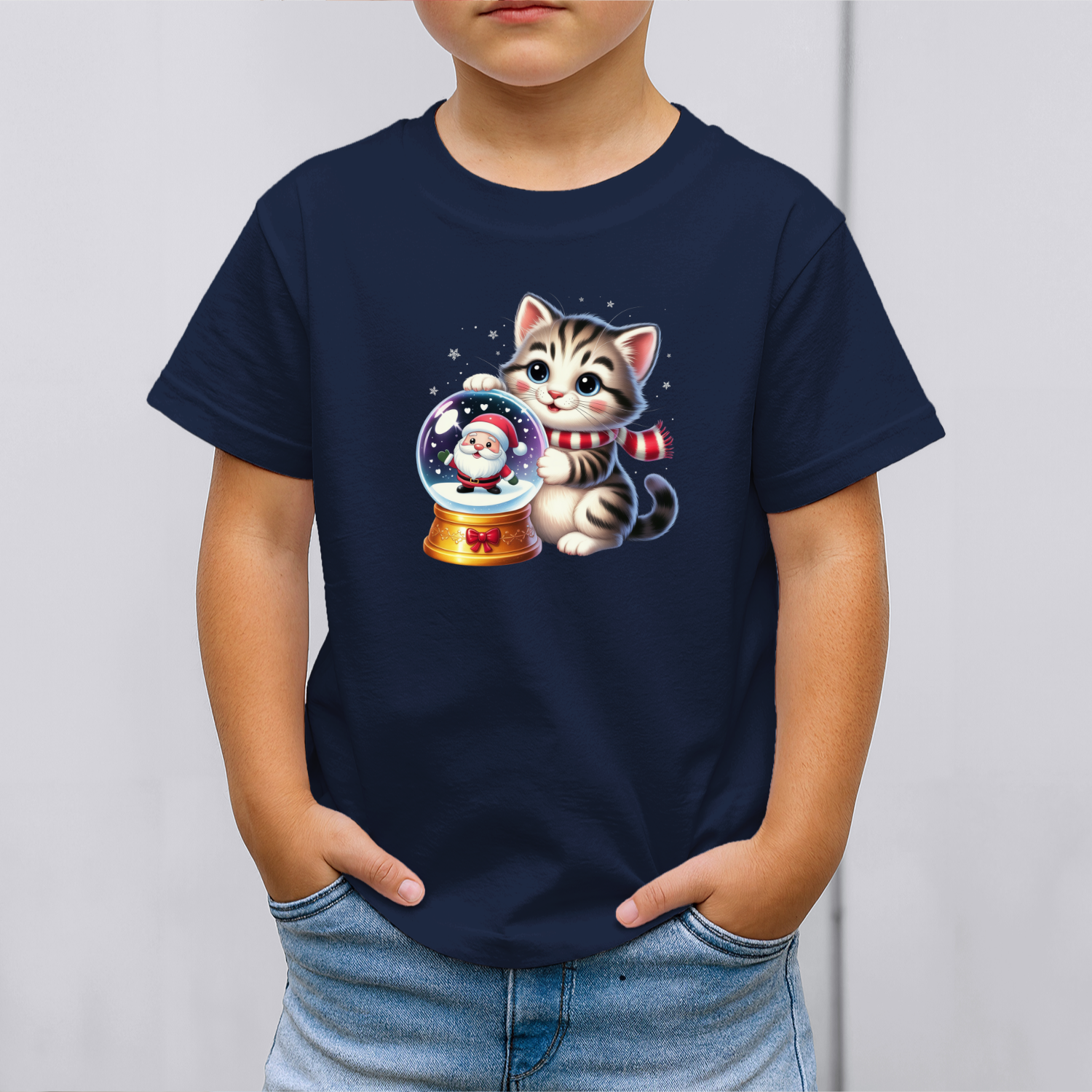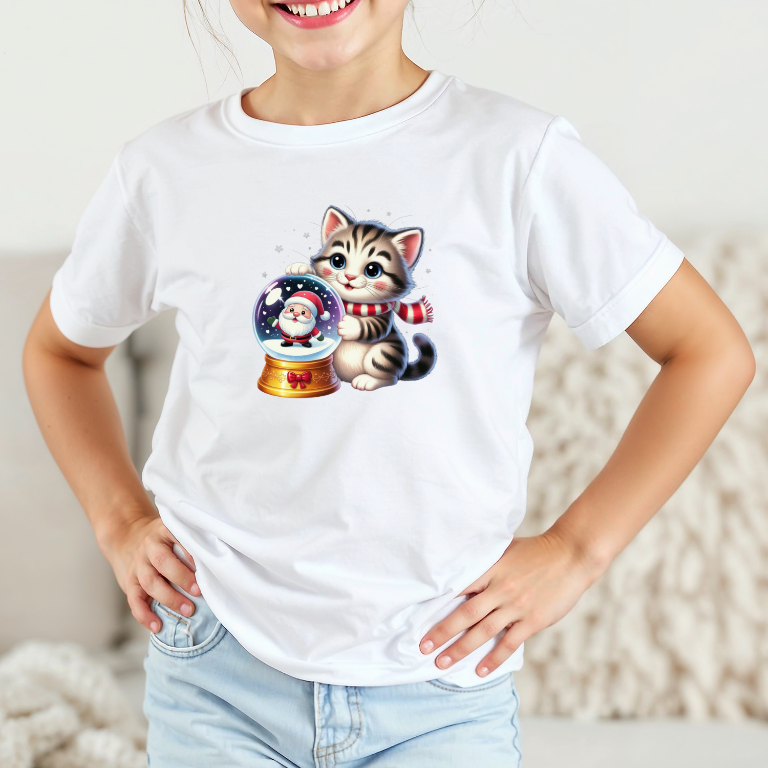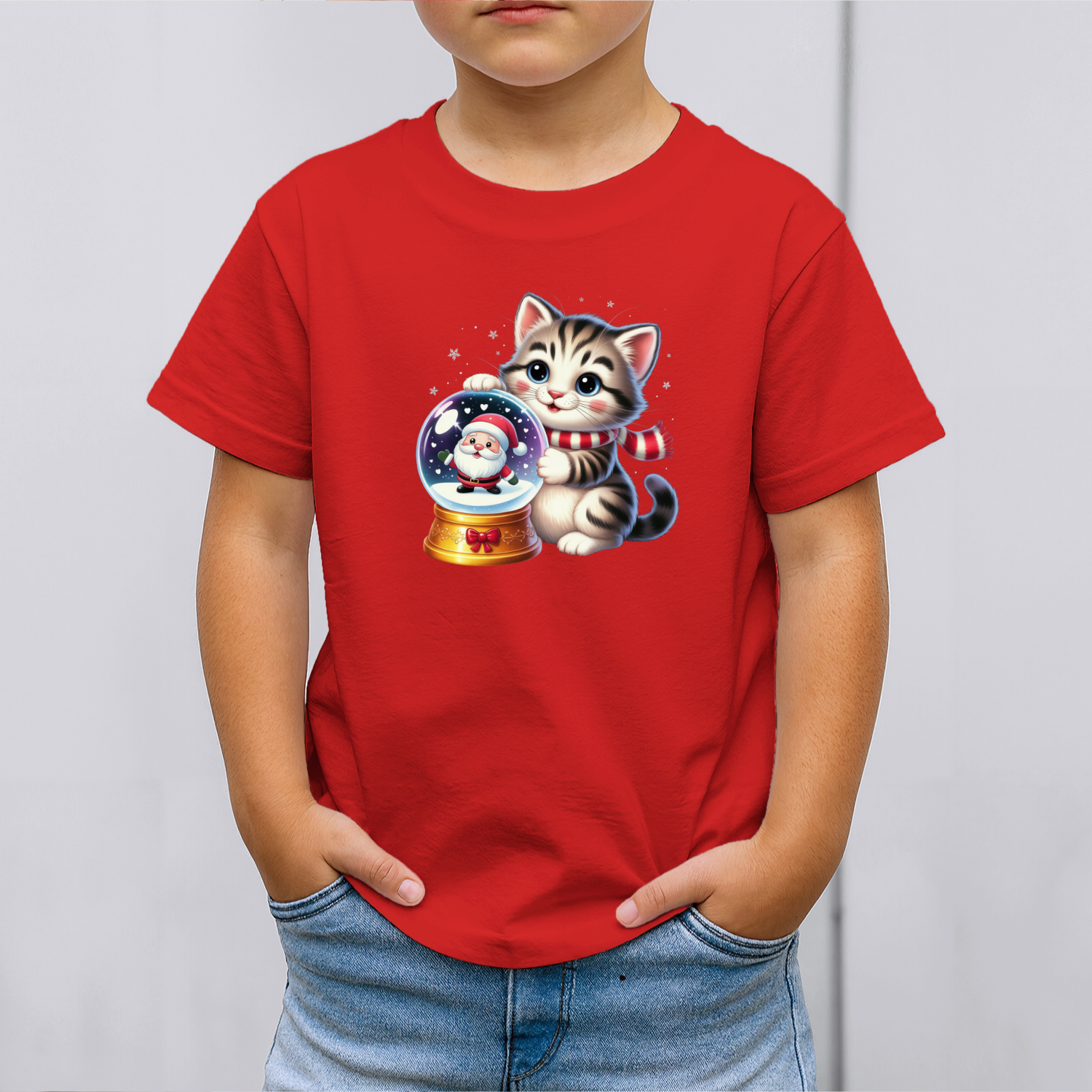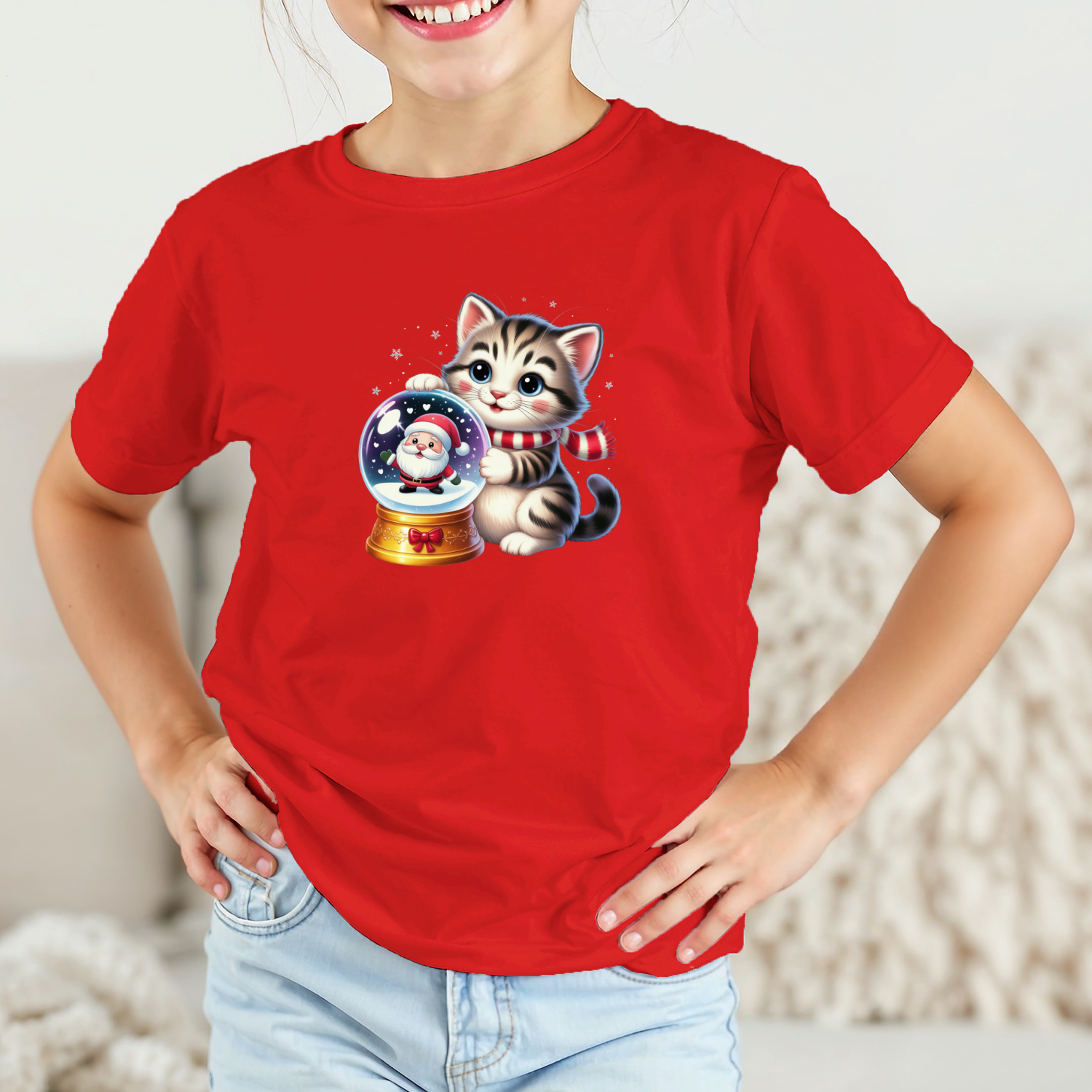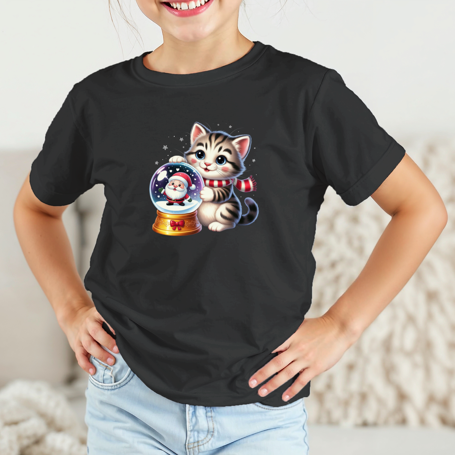 Vaikiški marškinėliai su spauda „Miau ir Kalėdų senelis“