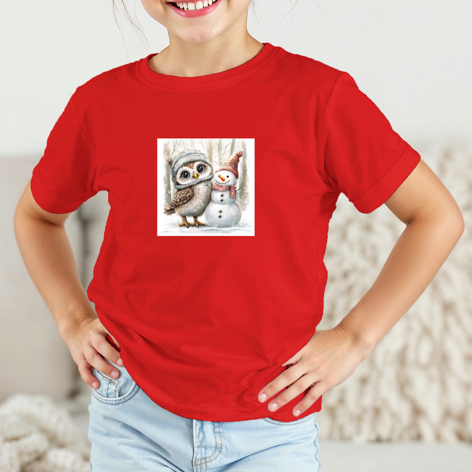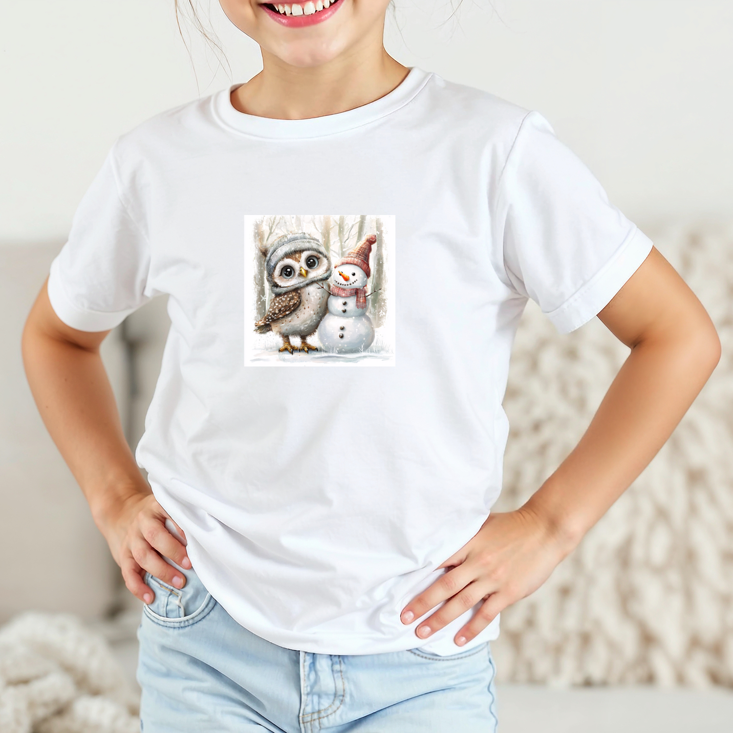 Vaikiški marškinėliai su spauda „Pelėdos ir sniego senio draugystė“