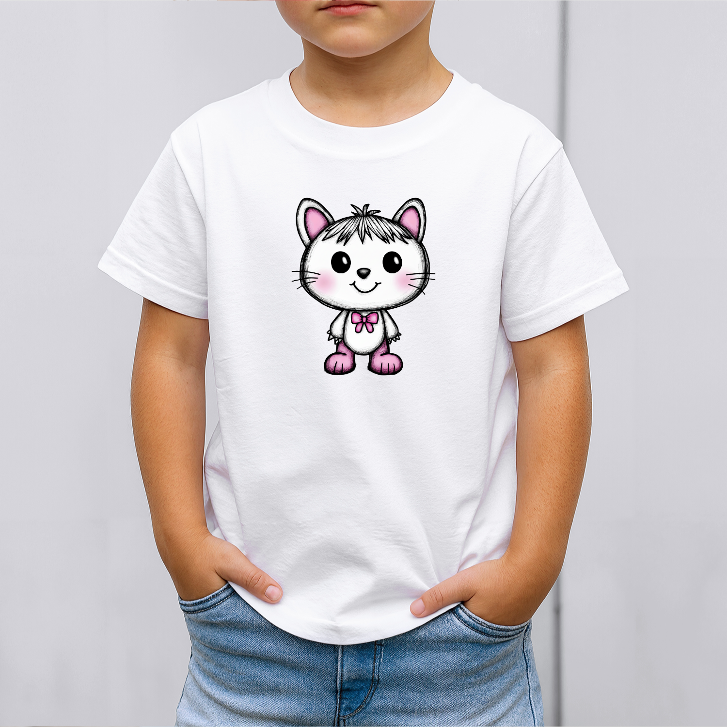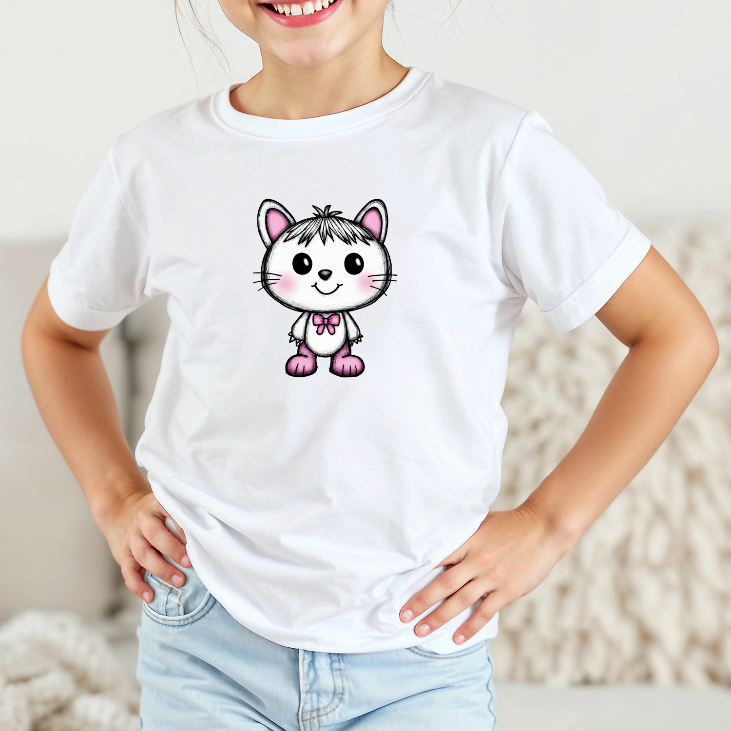Vaikiški marškinėliai su spauda „Smalsi katytė“