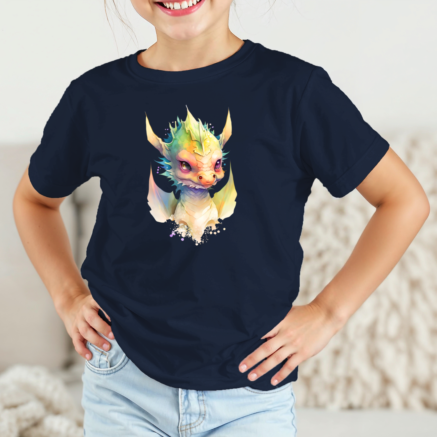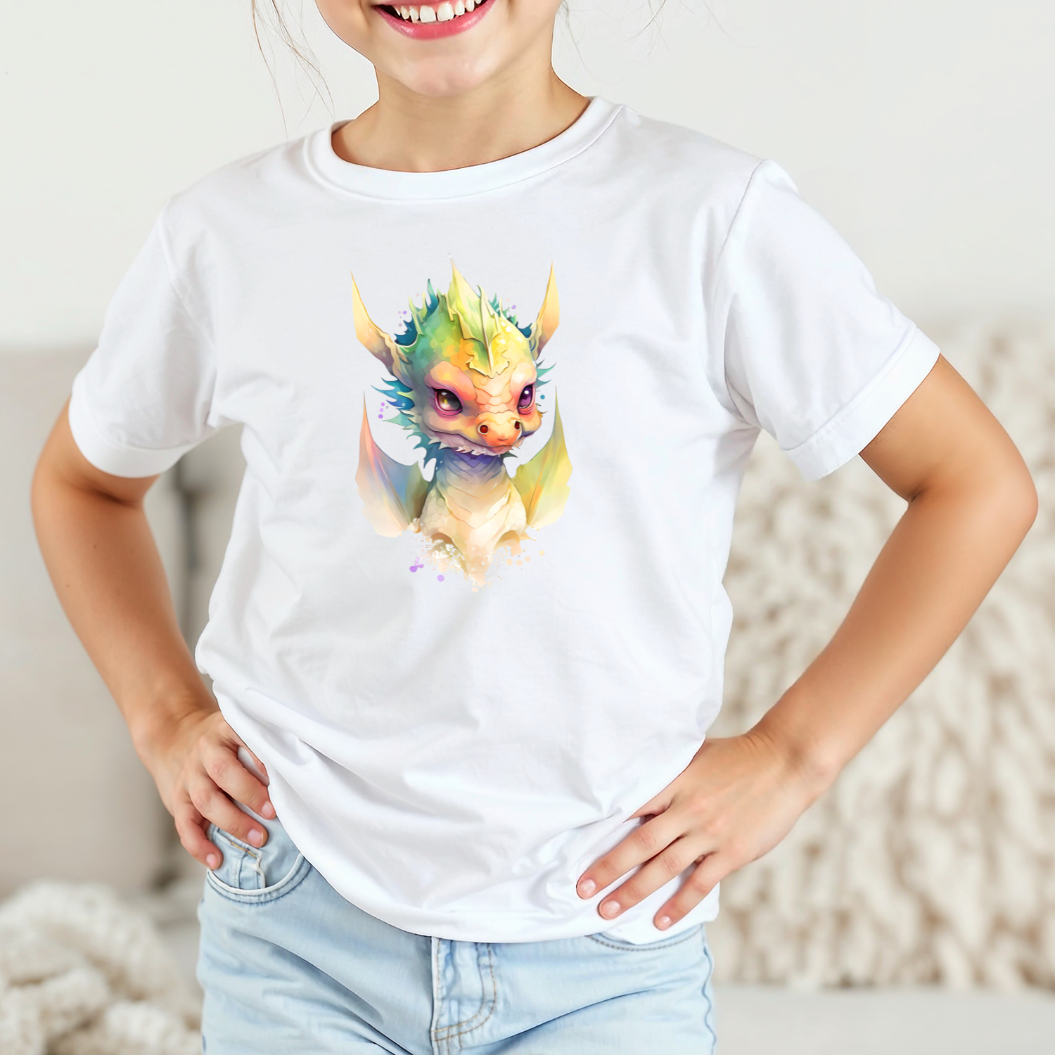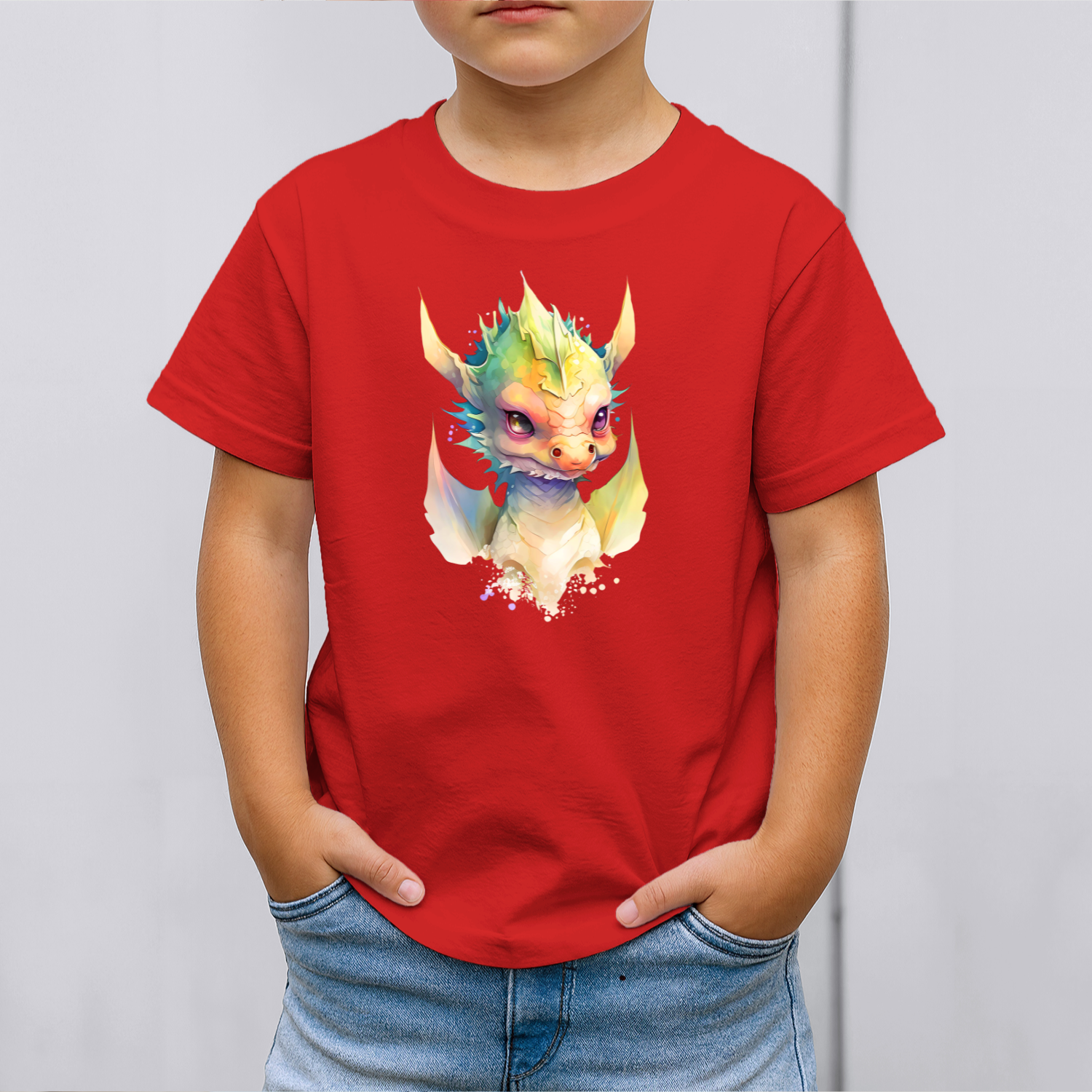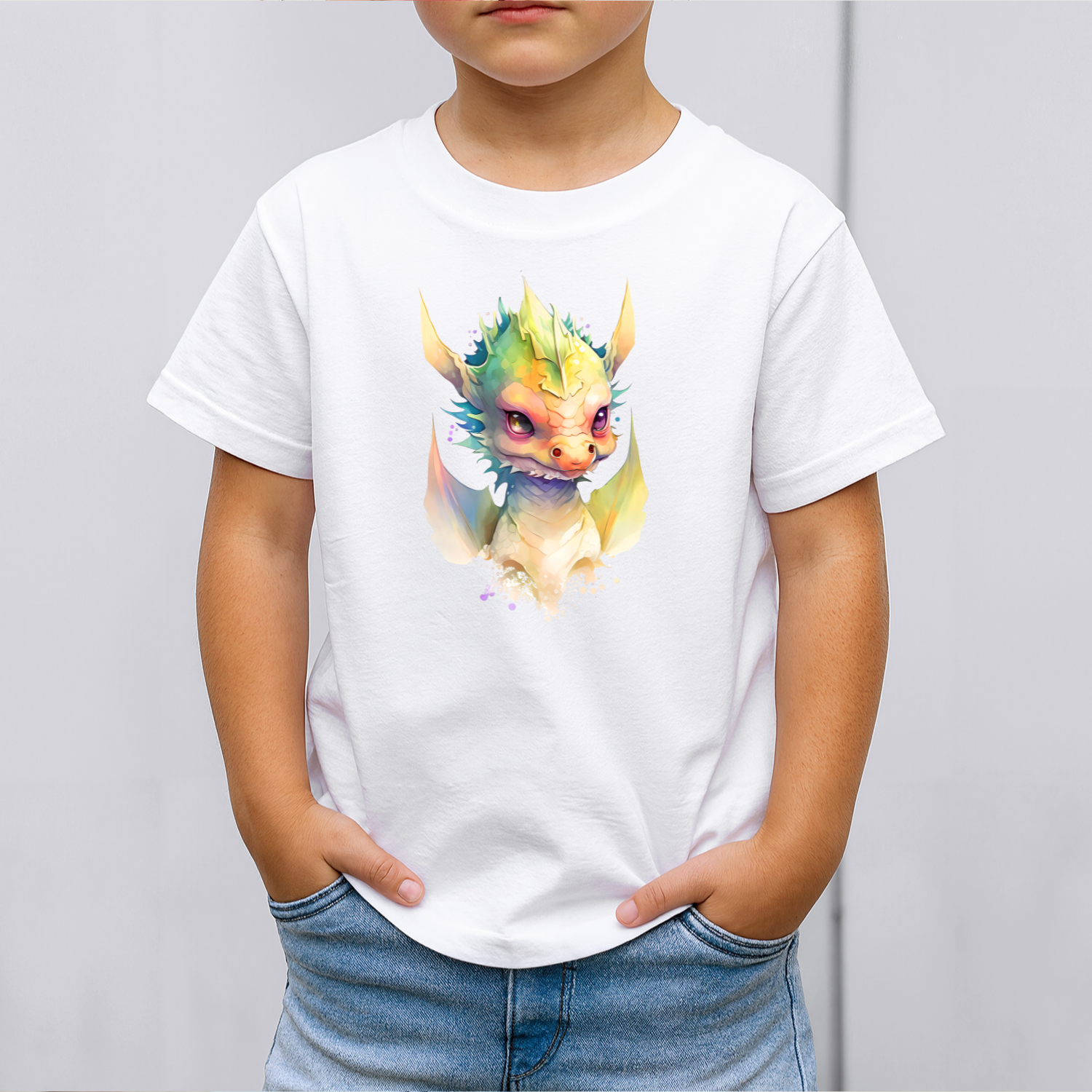 Vaikiški marškinėliai su spauda „Spalvų drakonas“