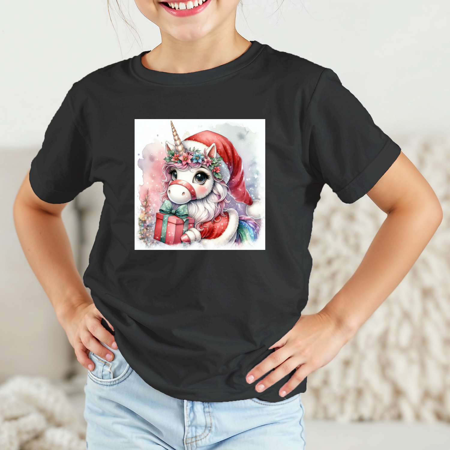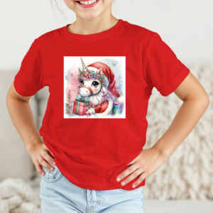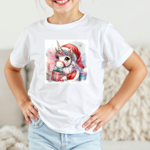 Vaikiški marškinėliai su spauda „Vienaragis dalina Kalėdų džiaugsmą“