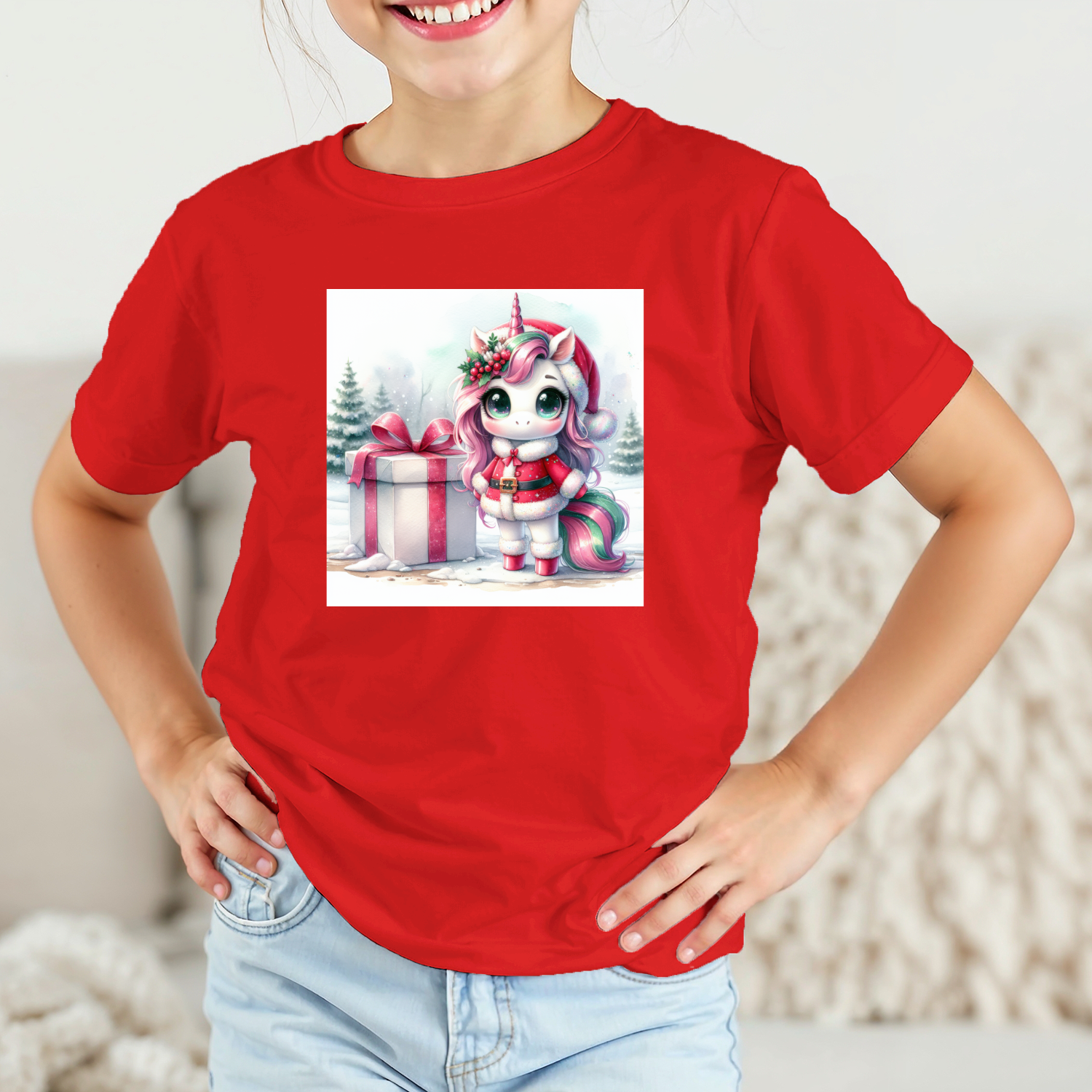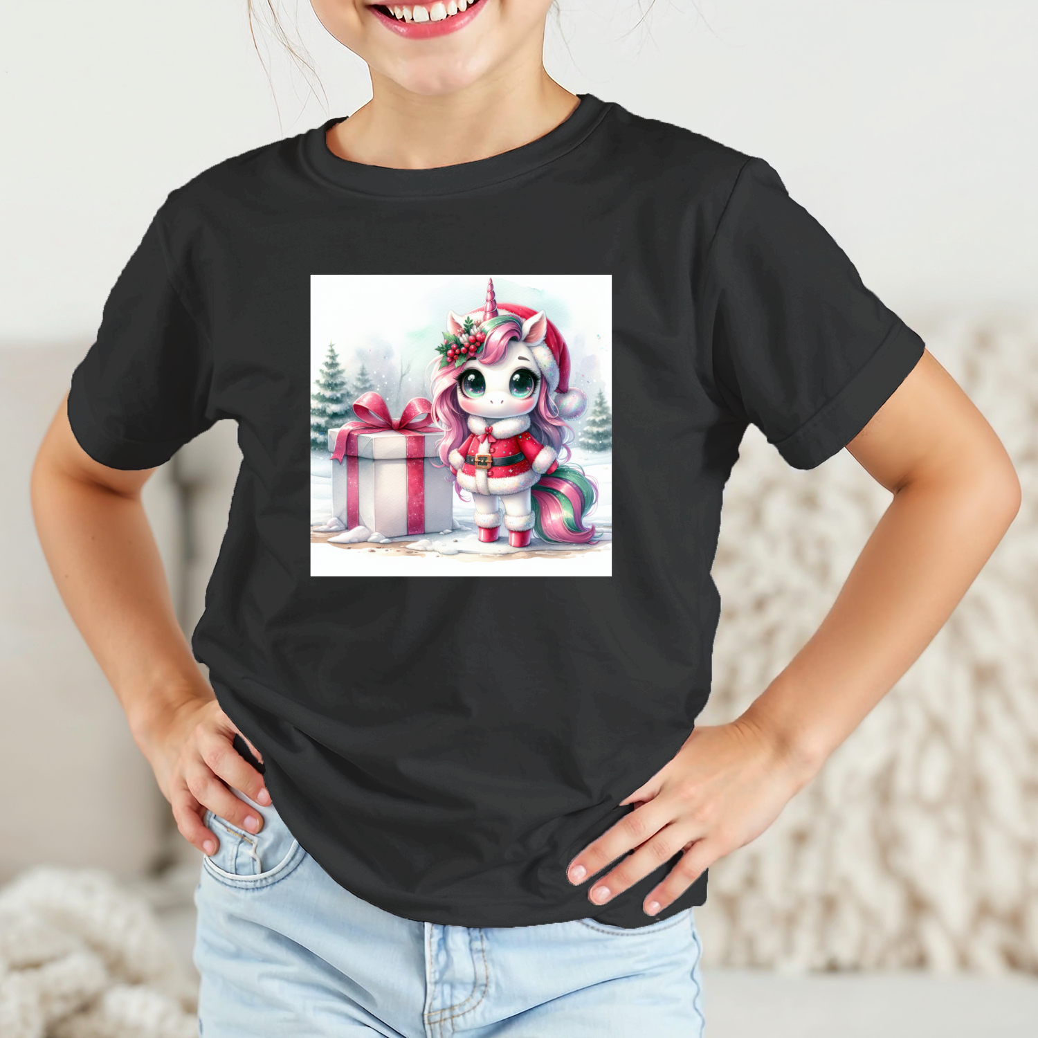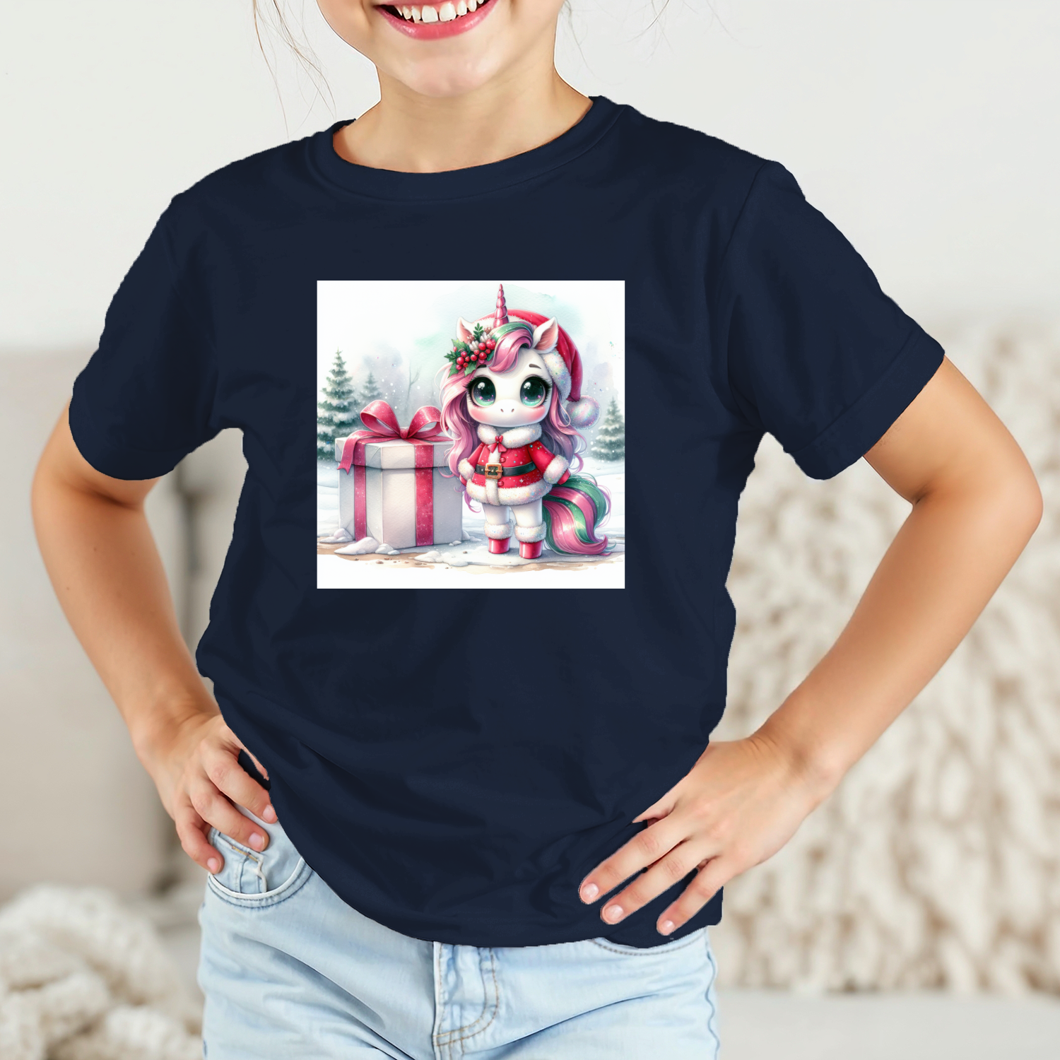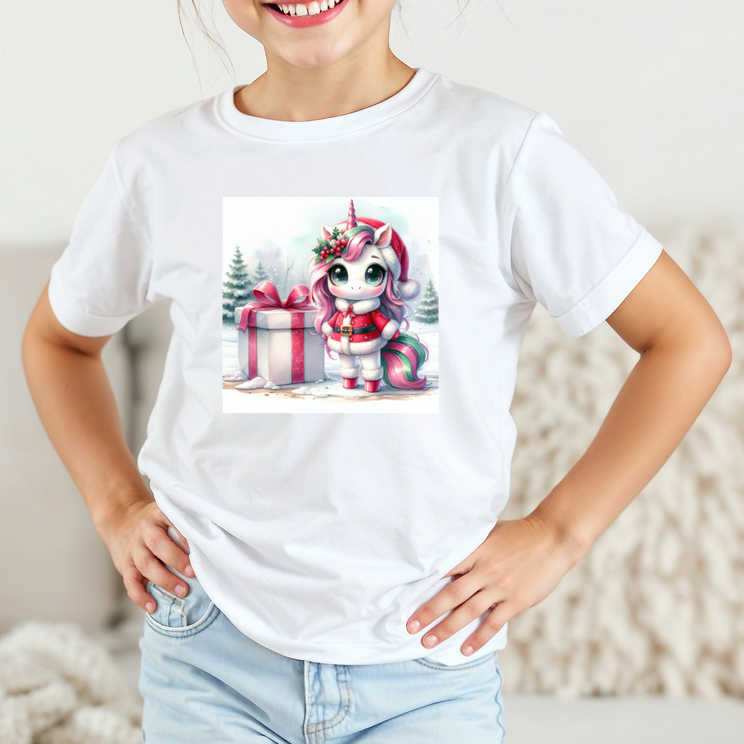 Vaikiški marškinėliai su spauda „Vienaragis laukia Kalėdų“