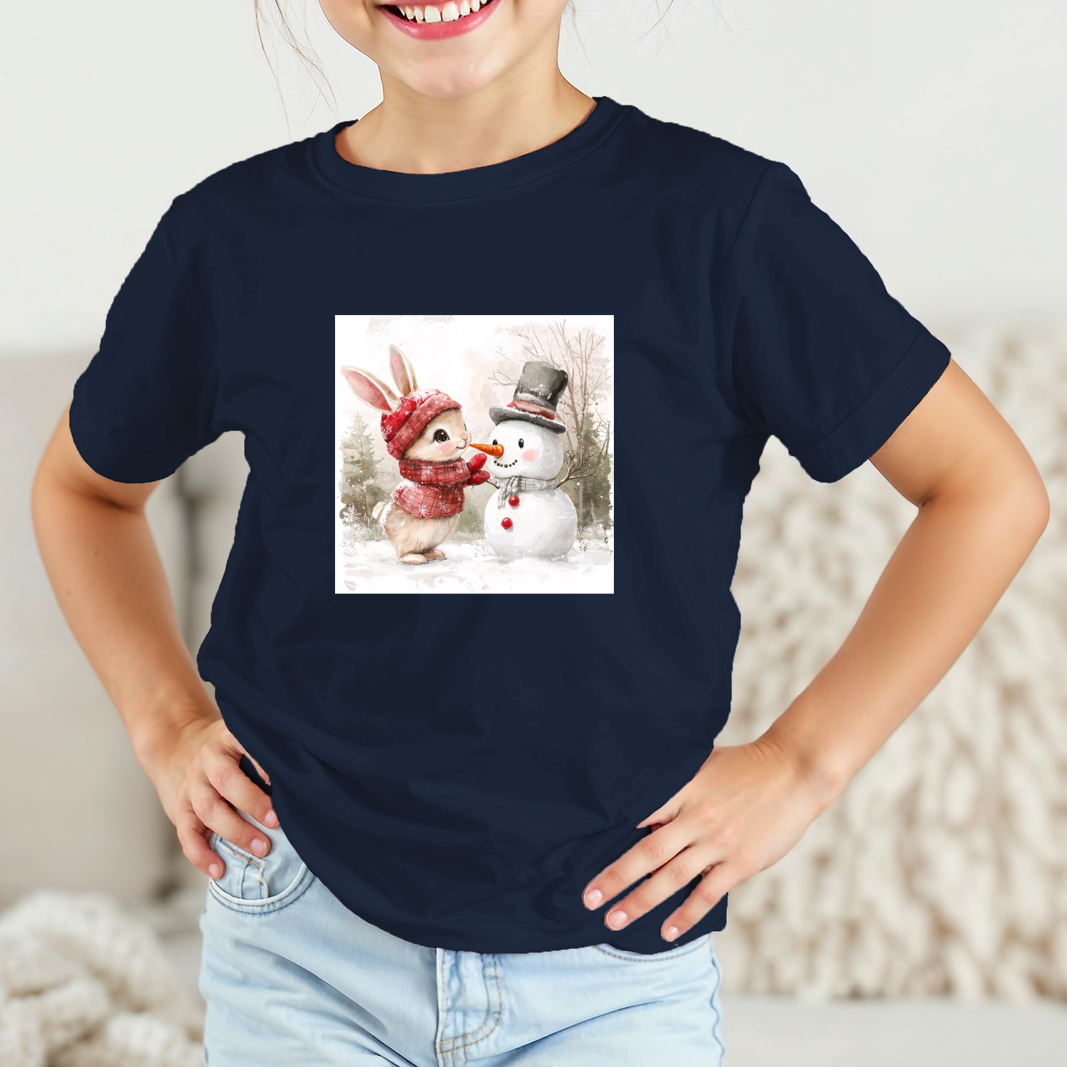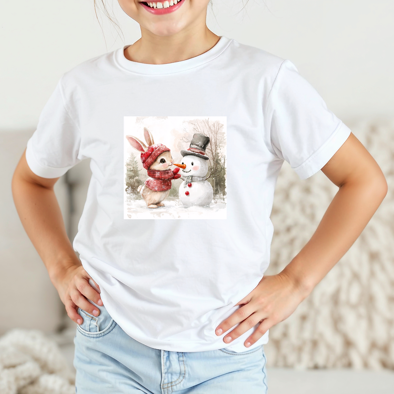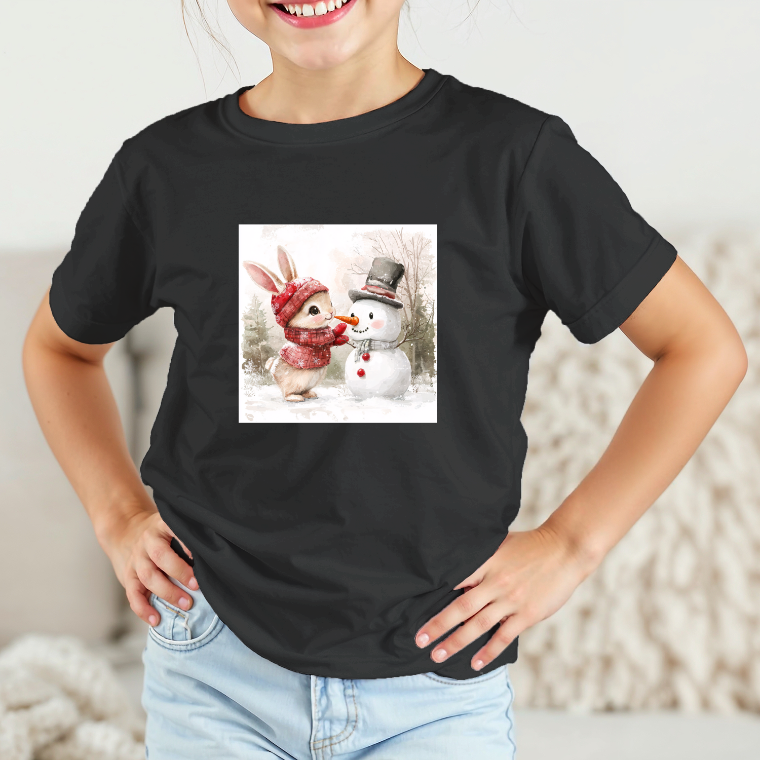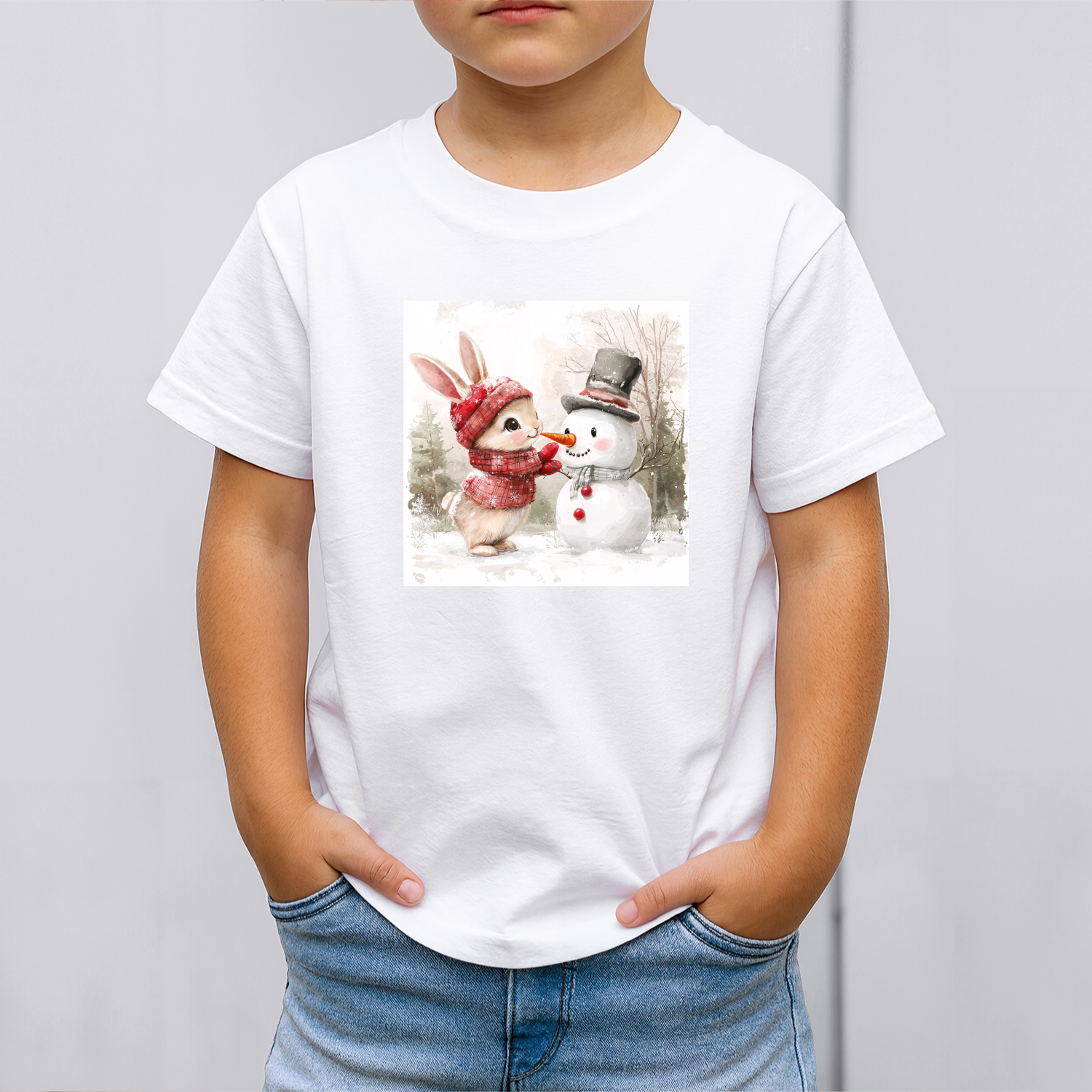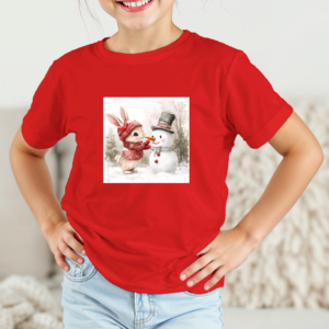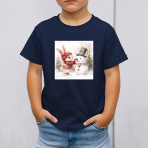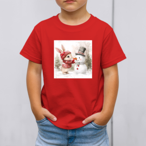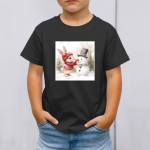 Vaikiški marškinėliai su spauda „Zuikučio ir sniego senio džiaugsmas“